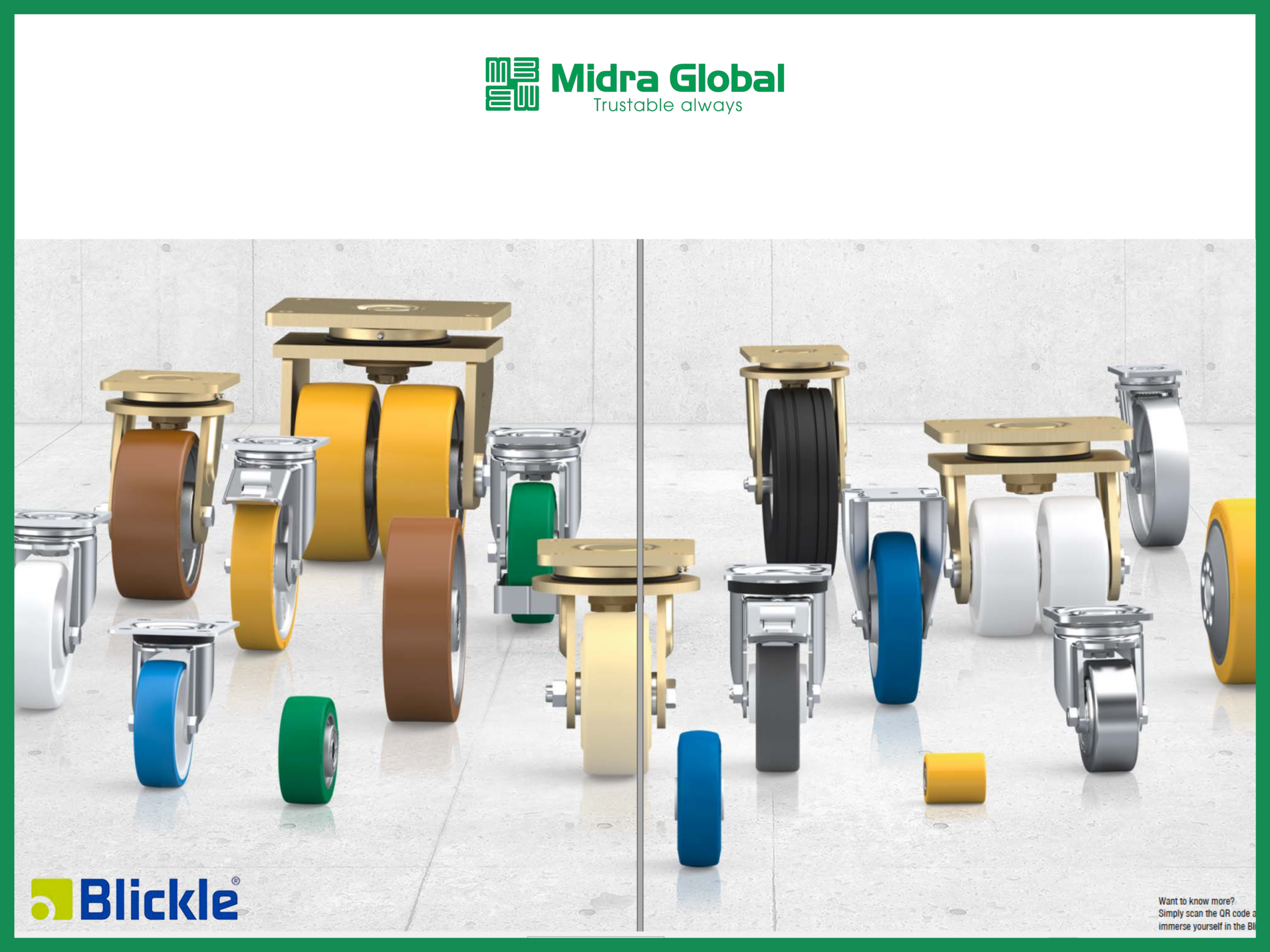Với kinh nghiệm trong các giải pháp cơ khí, nâng – vận chuyển và tự động hóa, Midra Global có khả năng tích hợp bánh xe Blickle vào:
