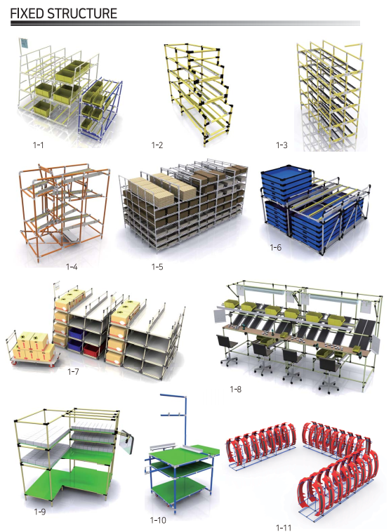 - Bàn thao tác, giá kệ, xe đẩy, kệ trung chuyển, line cấp phát vật tư theo triết lý Lean;