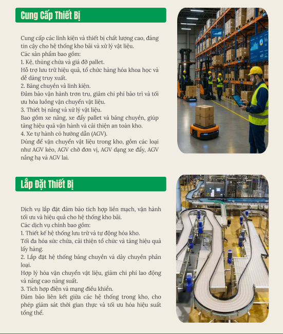 - Các giải pháp tối ưu dòng chảy vật tư (material flow), giảm lãng phí, tăng năng suất trên cùng diện tích nhà xưởng.