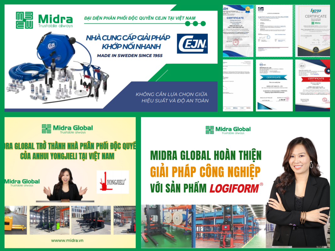 - Mở rộng hệ sinh thái đối tác: Midra Global chính thức trở thành Nhà phân phối (NPP) độc quyền của CEJN (Thụy Điển) tại Việt Nam, NPP độc quyền Anhui Yonjieli, NPP khu vực miền Bắc của Longiform, NPP bánh xe Blickle….